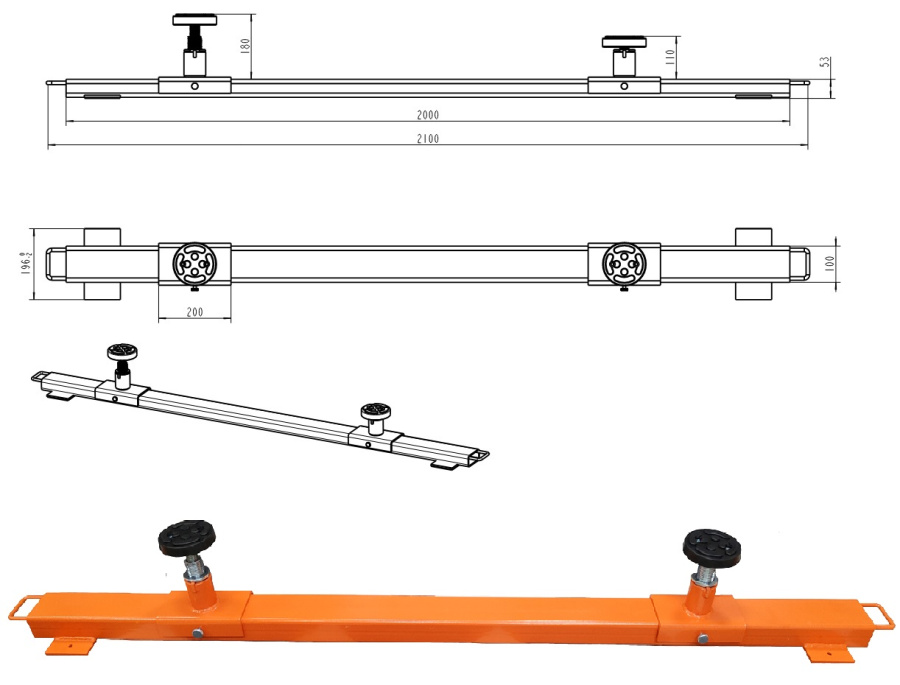 Длина (без учета рукояток): 2000 мм