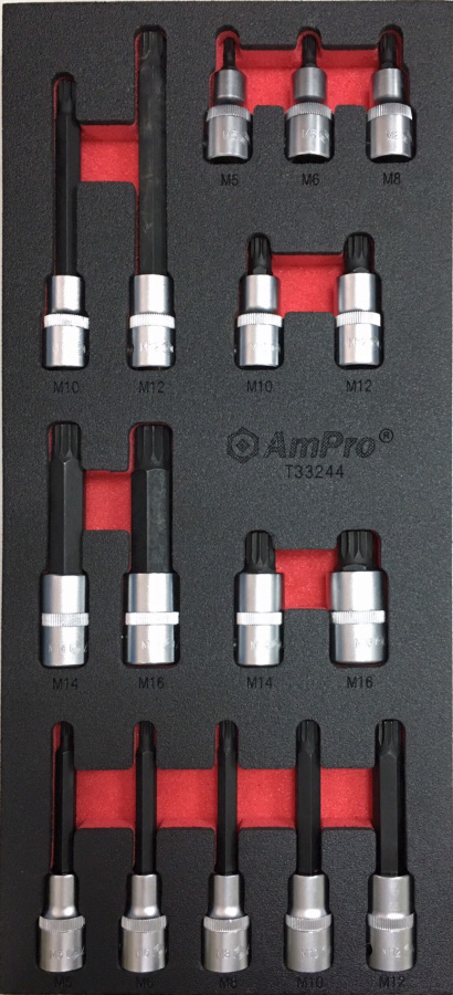 Приобрести T33244 Набор головок 1/2" с 12-гр.вставкой Spline (М5-М16), 16 предметов в мягком ложементе от компании AmPro (Тайвань) из раздела Ложементы мягкие (VA серия) по цене 3 170 рублей.