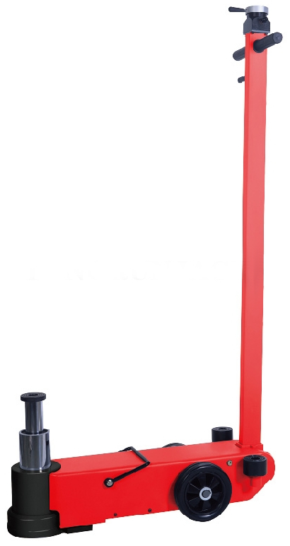 Домкрат подкатной пневмогидравлический (пневмопитание 6-8 бар). Для профессионального использования. Тип - двухступенчатый (различная высота подъема для каждой ступени: 276 мм. для ступени 25т, 372 мм для ступени 10т). Увеличители высоты подъема 75 и 45 мм. Хромированный цилиндр.