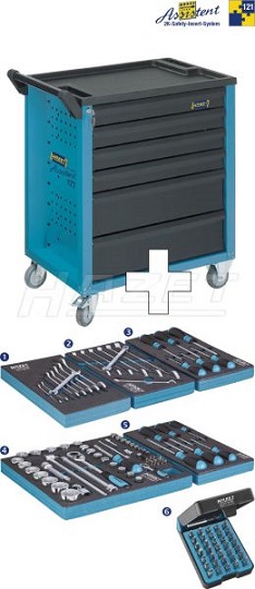 Hazet Тележка инструментальная 6 ящиков с набором инструментов 121пр.