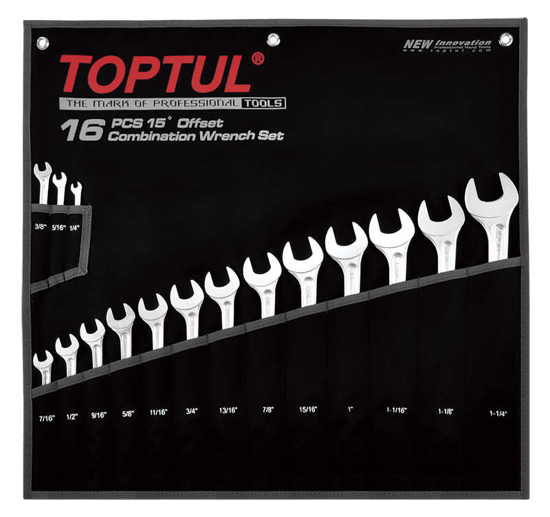 Набор ключей комбинированных дюймовых 1/4"-1-1/4", 16 предметов на полотне TOPTUL GPBX1601 купить в Нижнем Новгороде и других городах России