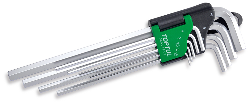 Приобрести Набор шестигранников Г-образных 1,5-10 мм, экстрадлинные, 9 пр. TOPTUL от компании Toptul (Тайвань) из раздела Шестигранные Г-образные ключи по цене 1 921 рублей.