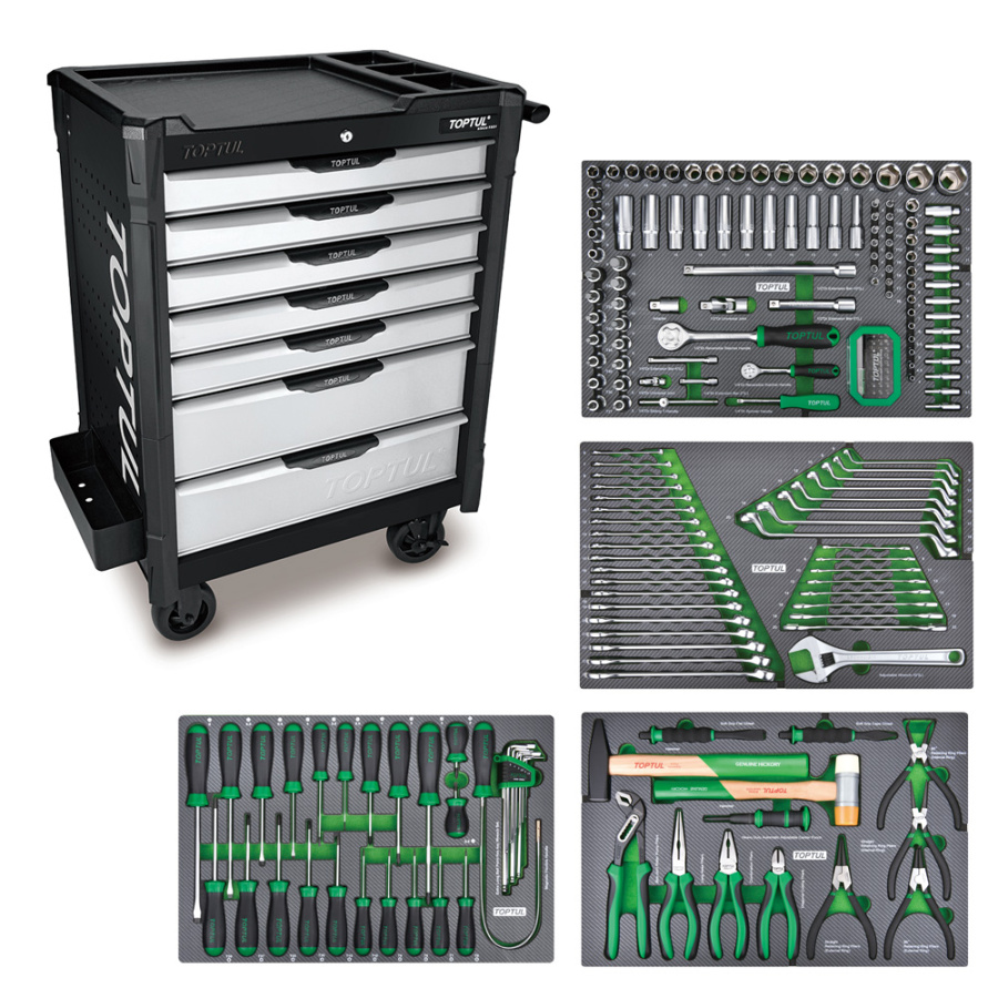 Тележка инструментальная 7 ящиков с набором инструментов 213 предметов TOPTUL