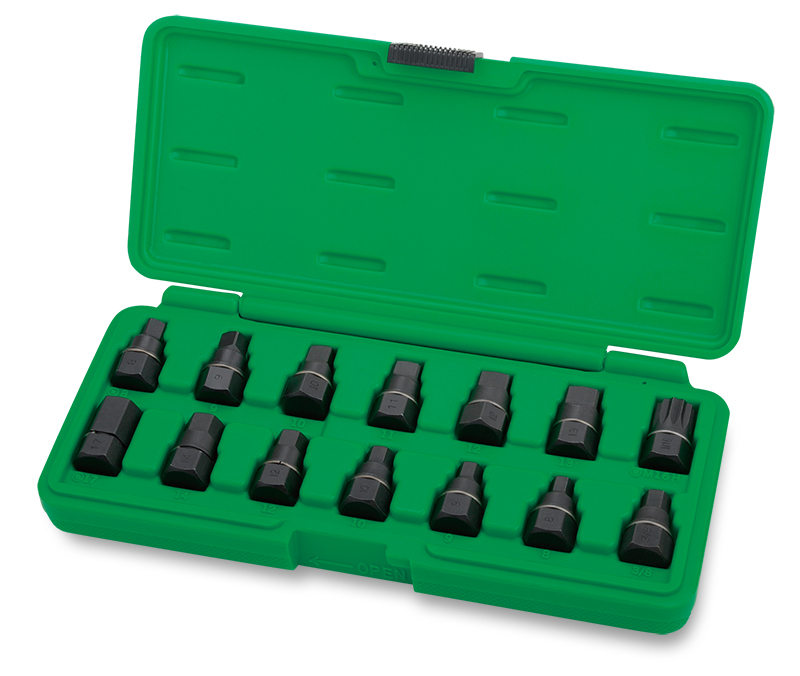 Набор головок усиленных для отворачивания масляных пробок, 14 предметов TOPTUL